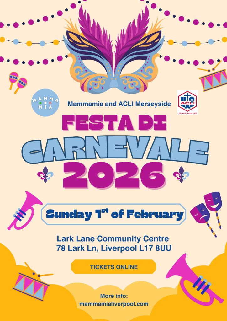 Domenica 1 febbraio 2026 dalle 11 alle 13 – il Lark Lane Community Centre di Liverpool ospiterà una grande Festa di Carnevale in maschera dedicata ai bambini e alle loro famiglie.